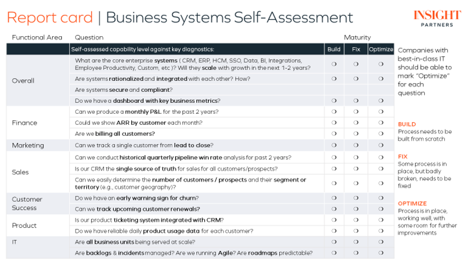 Enterprise architecture helps these companies improve both customer and employee experiences, optimizing the application portfolio and maintaining technical standards. Below is a typical self-assessment any company can perform to determine the level of systems maturity:
