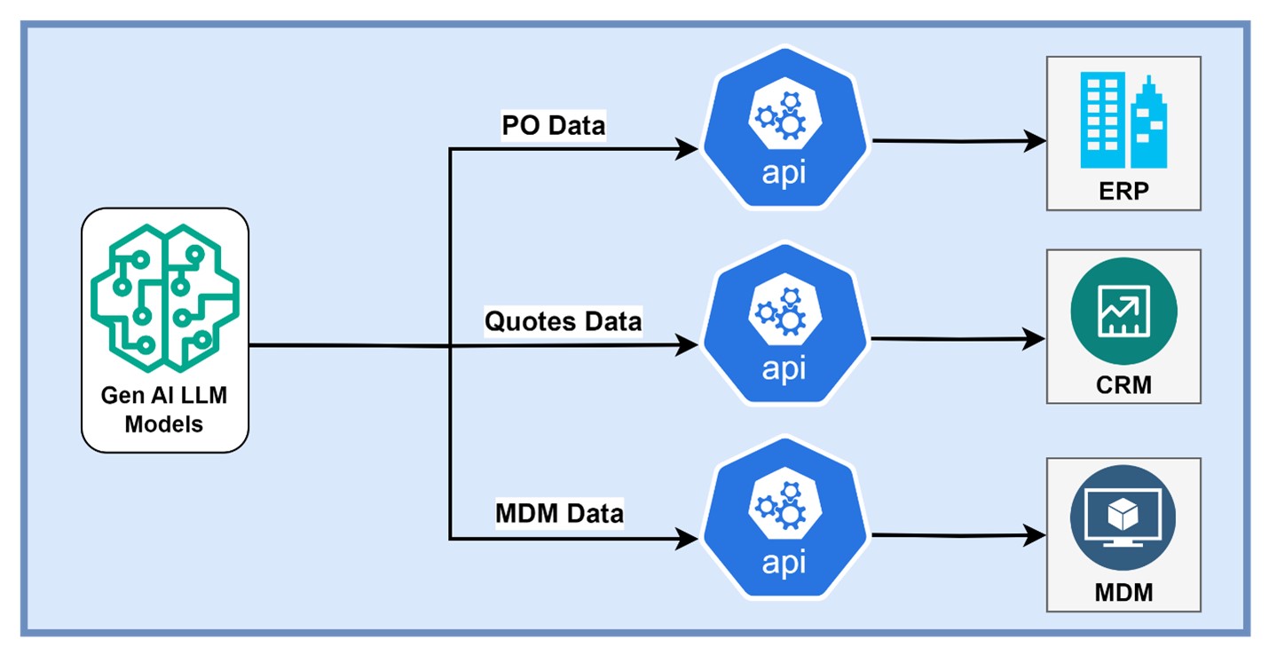 Figure 2: GenAI LLM models sourcing data from enterprise systems using APIs