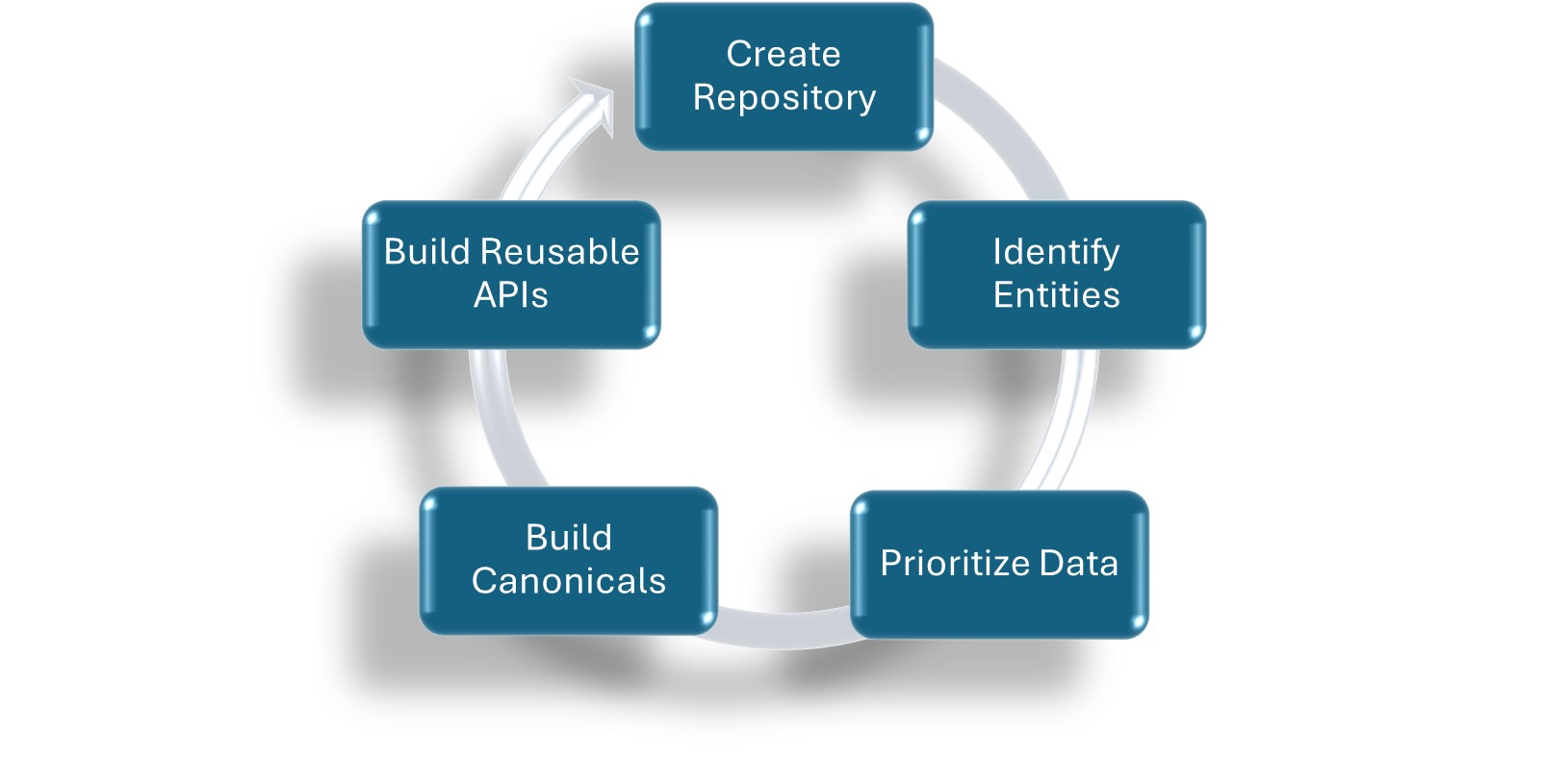 - Build reusable APIs. Determine the most trusted source-of-truth systems of data for the respective data entities previously shortlisted and build canonical, structure-based, entity-specific reusable APIs that will deliver the data to enterprise systems.